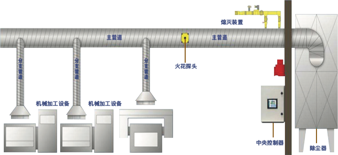 灰斗、過(guò)濾室、凈氣室、支架、提升閥、噴吹清灰裝置除塵器工作原理